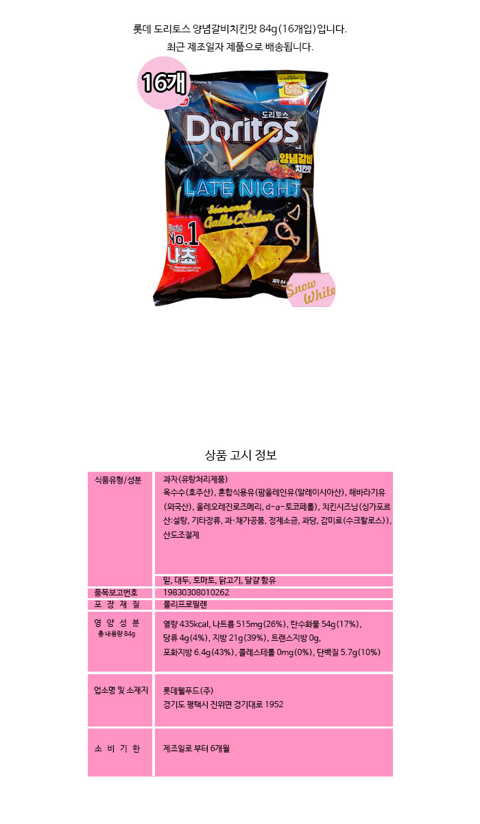 롯데 도리토스 양념갈비치킨맛 84g(16개입)