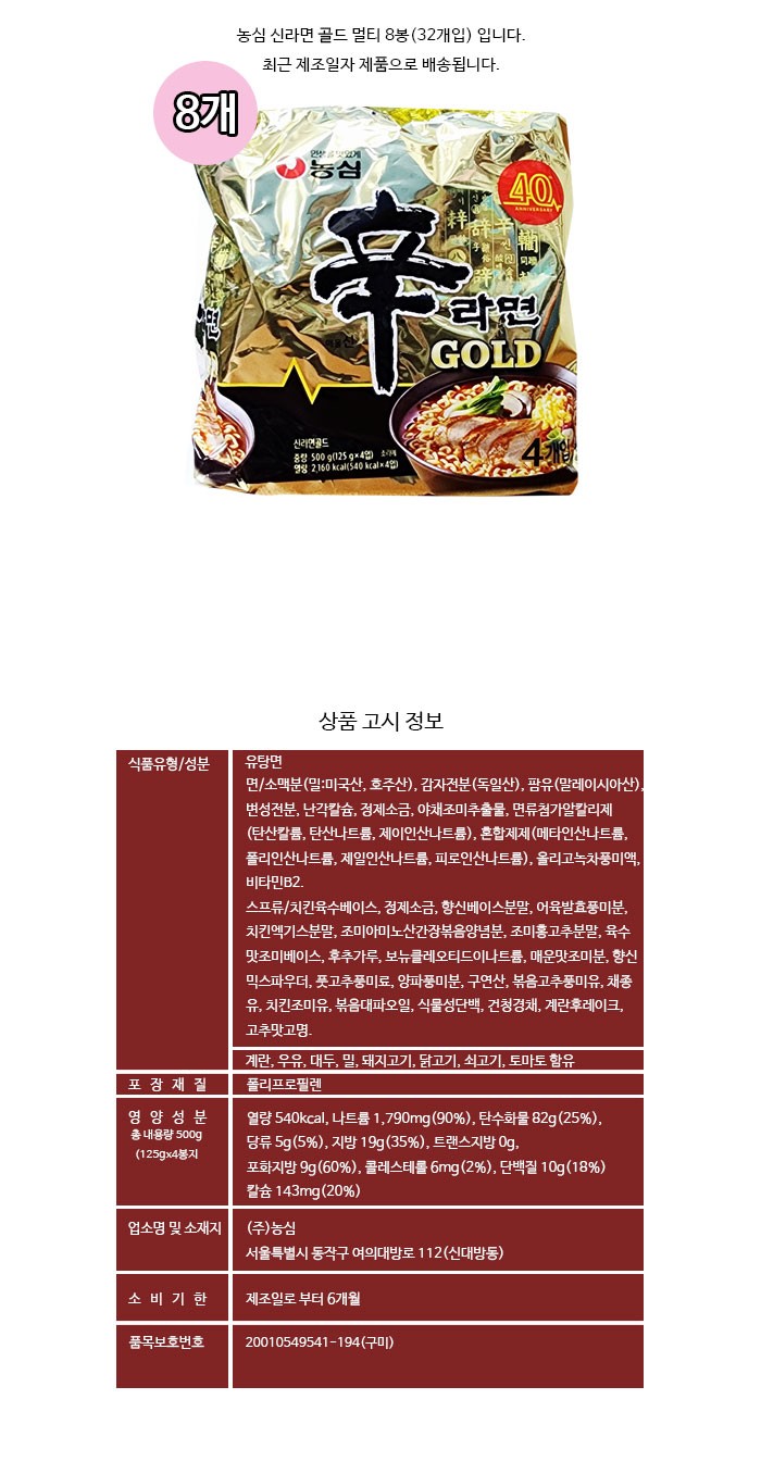 농심 신라면골드 멀티(4개입)x8개세트(총32봉입)